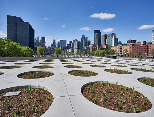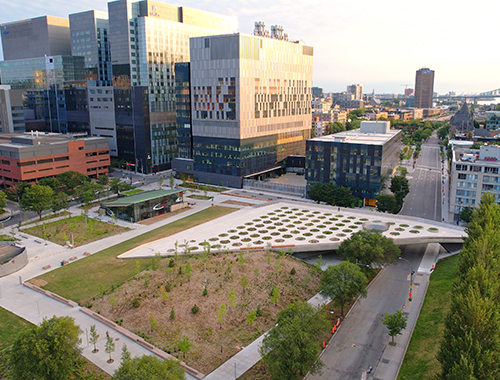 La place des Montréalaises se distingue par une articulation fine entre expression architecturale, structurale et innovation matérielle.