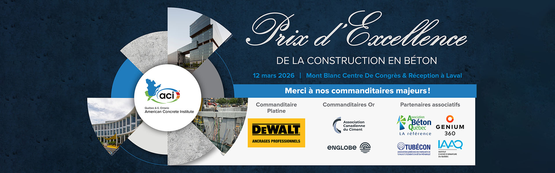 L’ACI - Section du Québec et de l'Est de l’Ontario a dévoilé les lauréats de la septième édition des Prix d'excellence de la construction en béton lors de son gala annuel le 12 mars 2026.