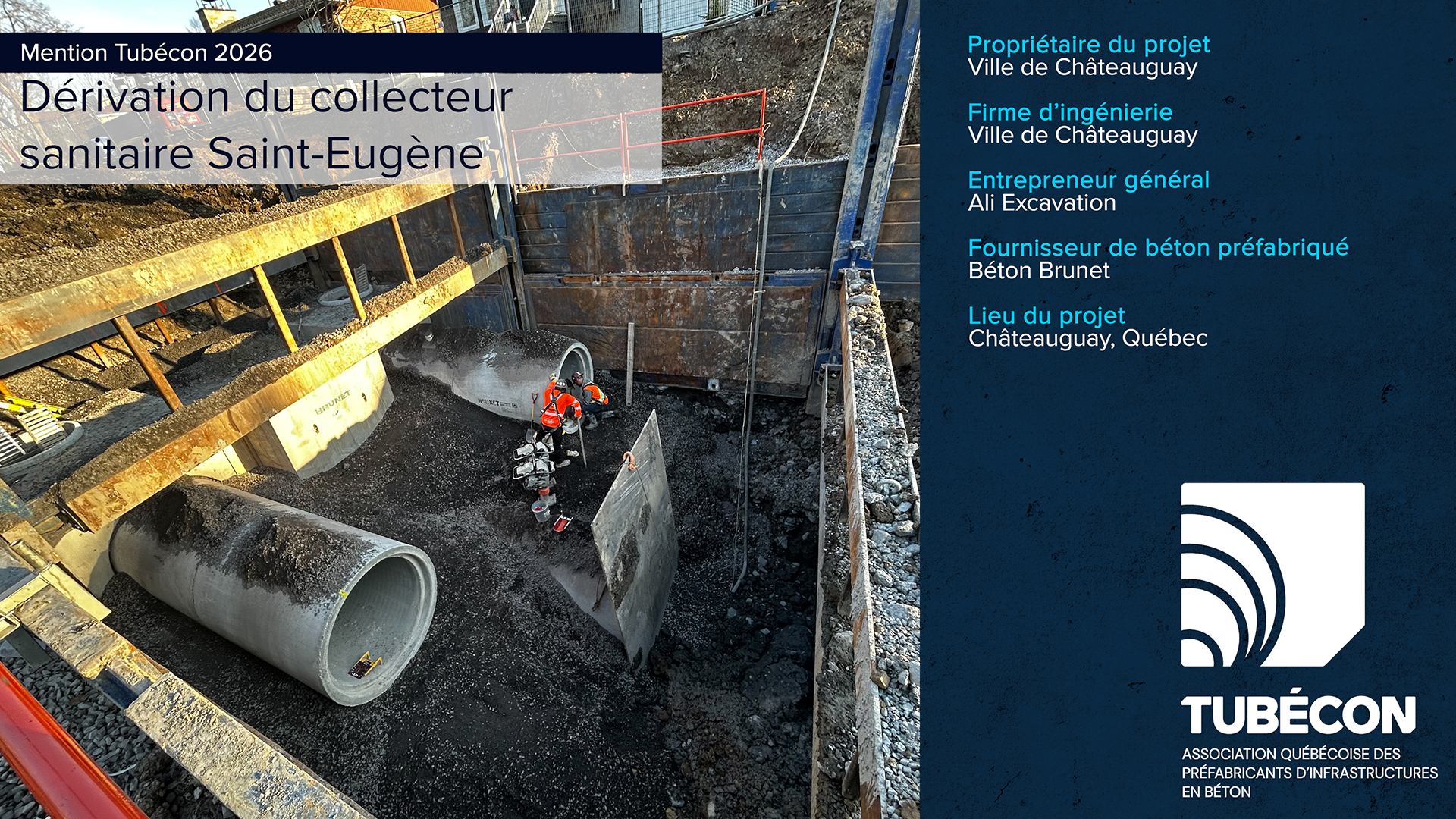 Ce projet a été réalisé pour améliorer le drainage en général dans ce secteur de la ville de Châteauguay. Parmi les défis techniques figurait la grande profondeur d'enfouissement des conduites (par endroits à plus de 10 m). Cette situation générait beaucoup de matériel de déblais à transporter ainsi qu’une grande quantité de matériel de remblai à acheminer au site. La résistance structurale des conduites constituait un enjeu à ces profondeurs.