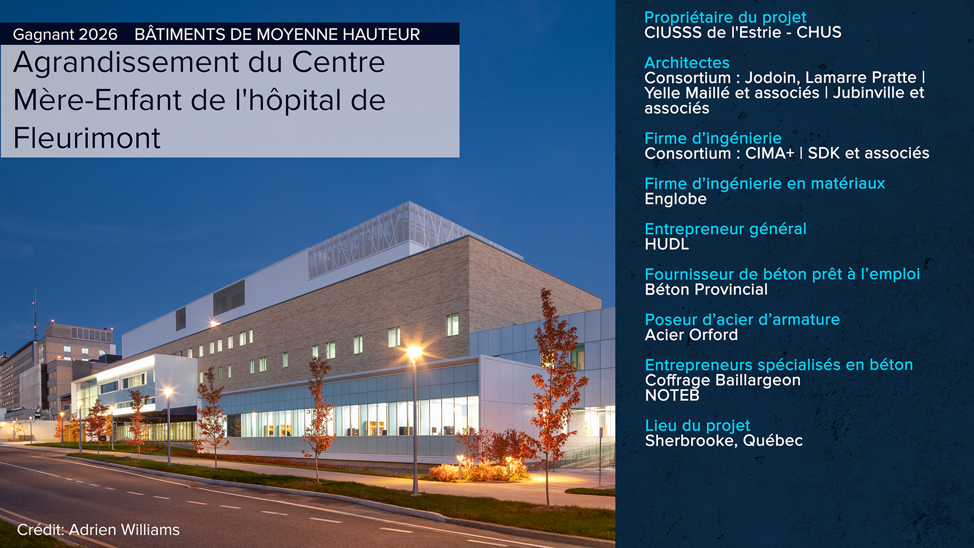 Le projet de construction du nouveau Centre Mère-Enfant et de l’agrandissement des services d’urgences de l’hôpital de Fleurimont en Estrie est un imposant projet de 21 150 m3 de béton réalisé en gérance de construction.