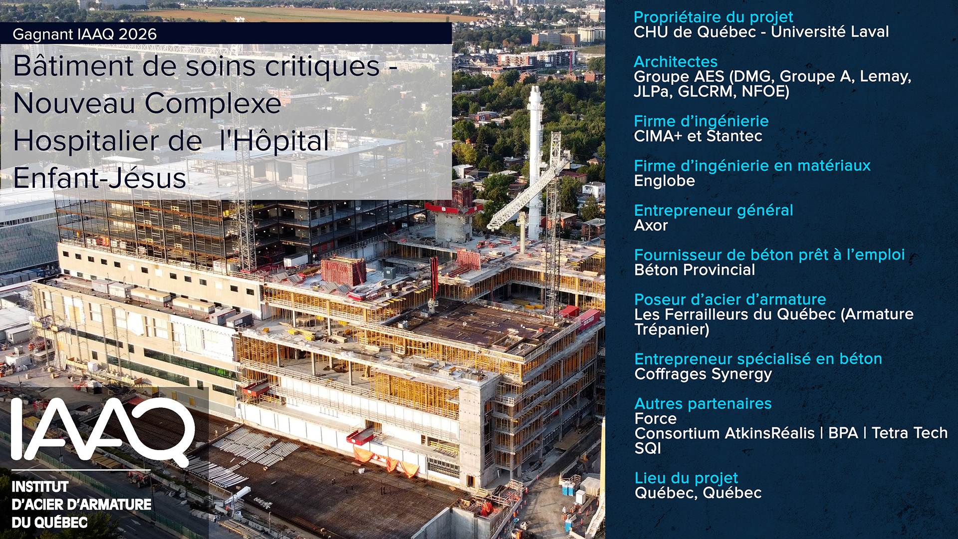L’acier d’armature est un partenaire essentiel au béton dans le projet. En plus d’éléments conventionnels, la construction a nécessité :
