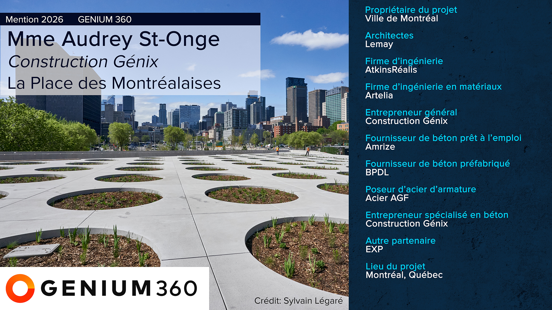 Audrey St-Onge, ing., s’est jointe à l’équipe de projet au début de l’année 2023. Elle a rapidement occupé un rôle central et a brillamment relevé le défi de son premier mandat comme gérante de projet, à seulement 27 ans, lors de l’achèvement de la Place des Montréalaises en 2025, un projet d’envergure de 72 M$.